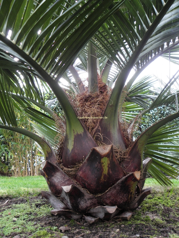 05.10.2017: Die Honigpalme ist 2,1m hoch und hat einen Durchmesser von 2,7m. Ab diesem Winter werde ich die Wedel zusammenbinden müssen. Der Stamm hat einen Durchmesser von 43cm. Obwohl es ab August fast nur kalt und nass war hat sie 7 neue Wedel bekommen.