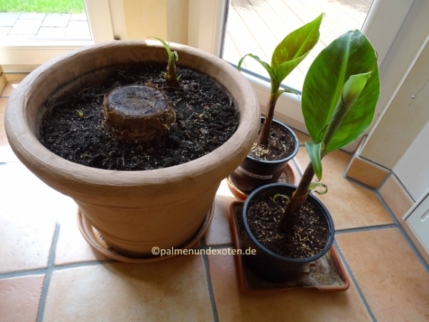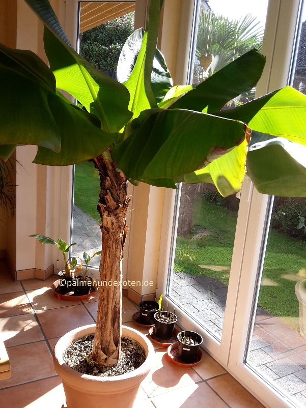 16.09.2017: Die Banane hat noch einige Ableger produziert. In 2-3 Jahren können wir hoffendlich wieder Bananen von der Sorte ernten.