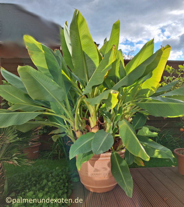 12.11.2023: Anfang August hat die Musella einen deutlich größeren Topf bekommen. Danach ist sie extrem stark gewachsen. Mit Topf gemessen war sie über 1,8m hoch.