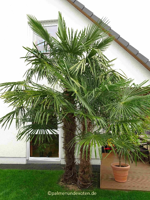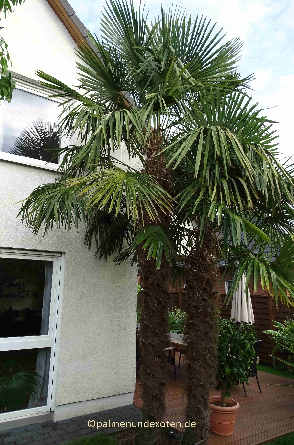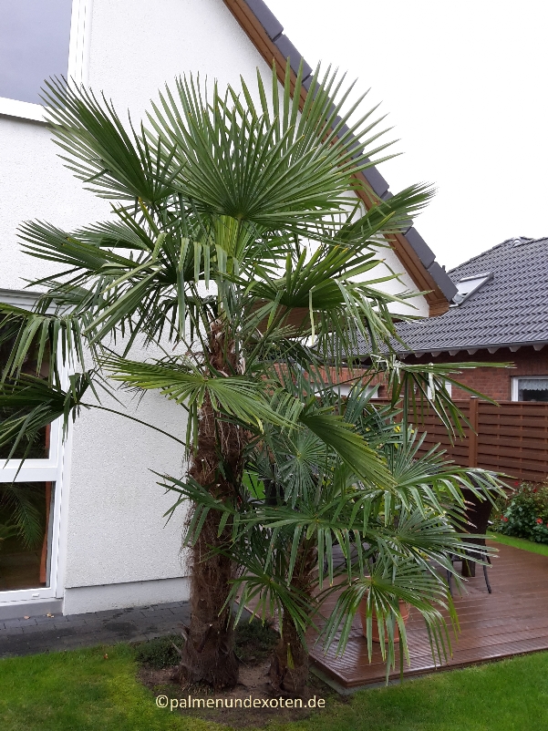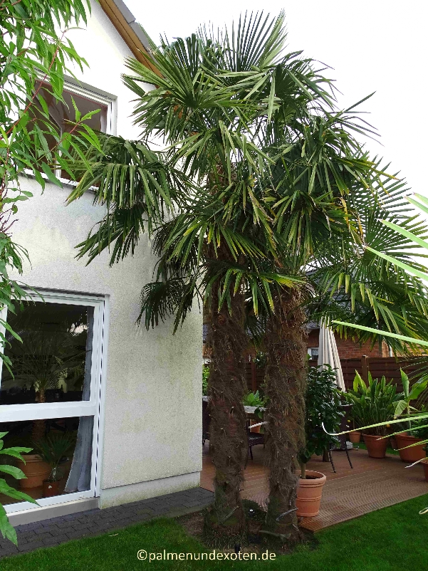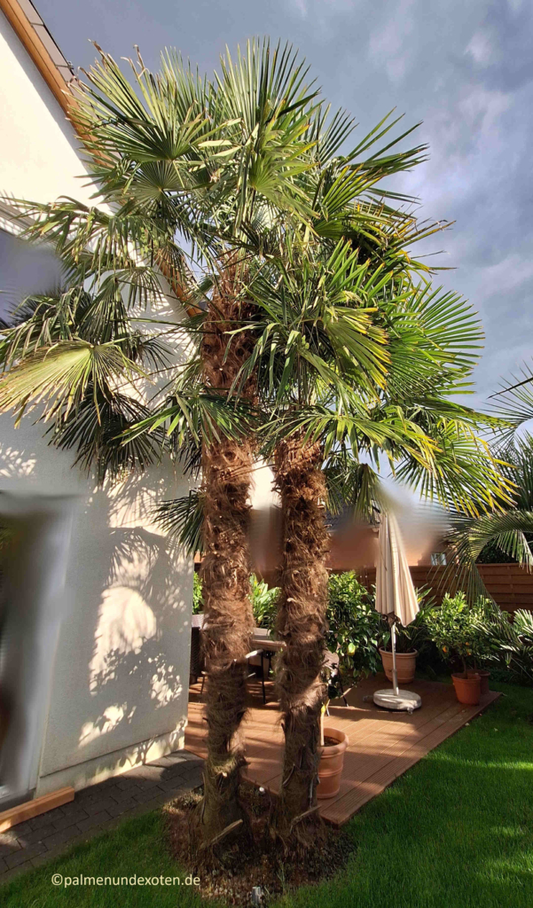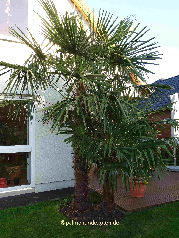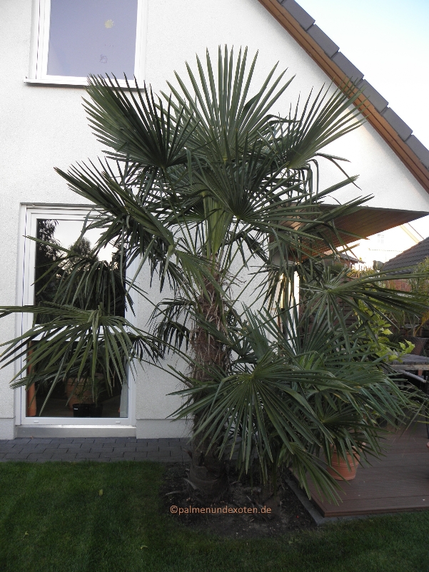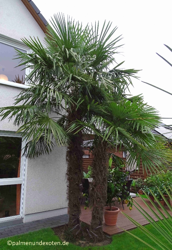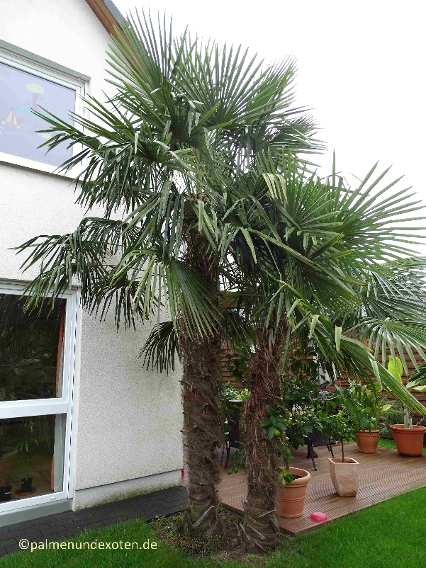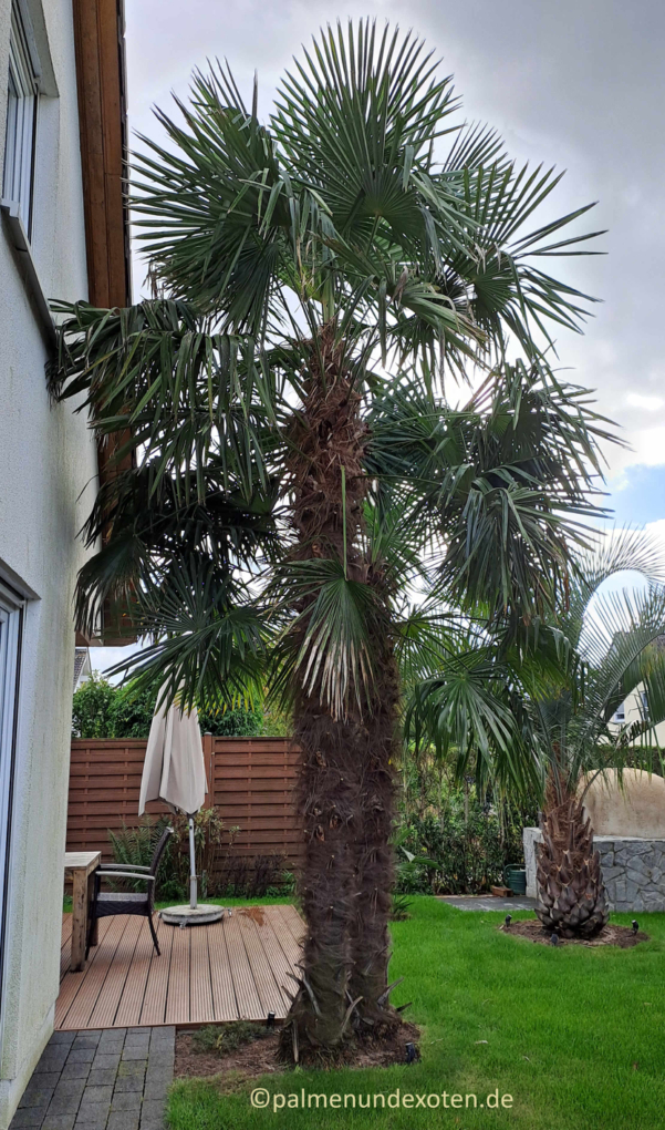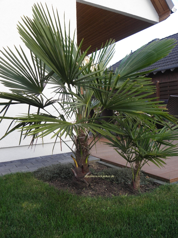 15.10.2016: Die große Trachy ist jetzt 3,3m hoch bei einer Stammhöhe von ca. 1,8m. Sie hat dieses Jahr 14 neue Wedel bekommen. Die kleine Trachy hat dieses Jahr einen halben Meter zugelegt und ist jetzt 1,9m hoch.