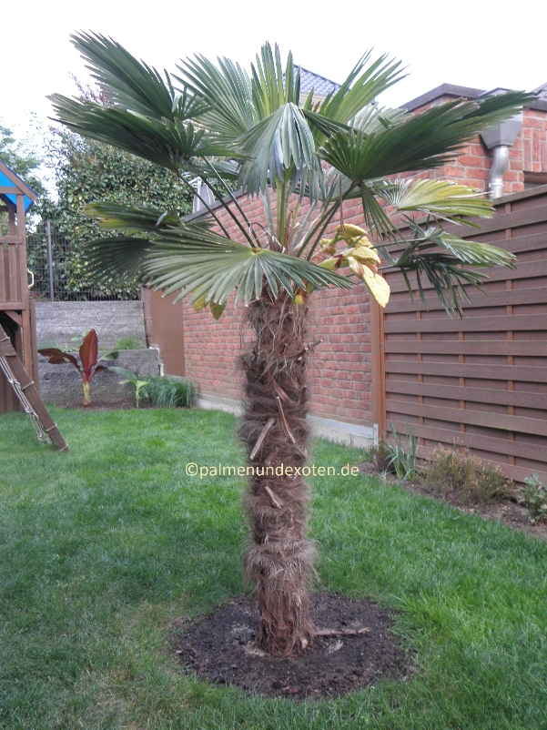 27.09.2014: Die Trachycarpus wagnerianus hat jetzt eine Gesamthöhe von 2,1m und eine Stammhöhe von 1,3m. Das wachstum beschleunigt sich nach 3 ausgepflanzten Jahren deutlich.